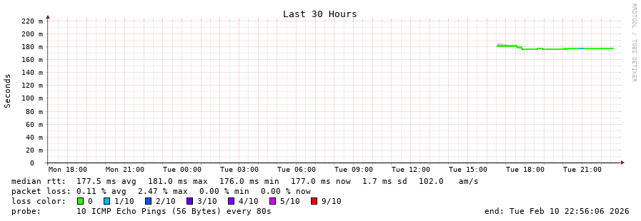 17 > be12266.ccr42.ams03.atlas.cogentco.com (154.54.56.173) [AS174] 172.924ms 172.233ms 176.938ms
