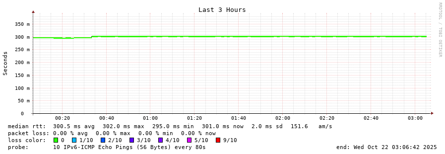 28 > 2a02:2f00:8708::f7 (2a02:2f00:8708::f7) [AS8708] 306.006ms 307.015ms 305.663ms