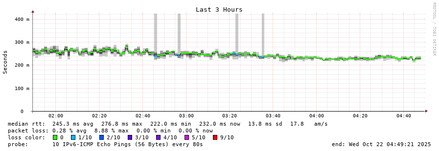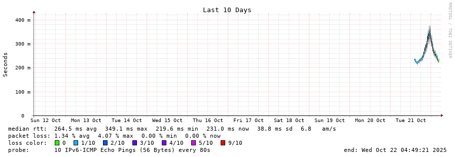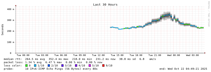 traceroute to 2c0f:5400:2:15::1 (2c0f:5400:2:15::1), 30 hops max, 80 byte packets - Generated at 2025-10-22 04:30:01