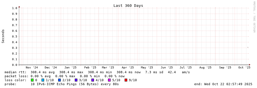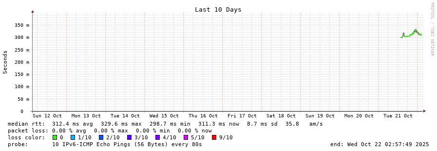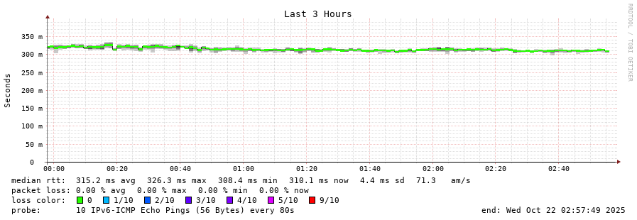 25 > 2001:b68:d:0:ee08:6bff:fe73:2da0 (2001:b68:d:0:ee08:6bff:fe73:2da0) [AS2108] 323.558ms 329.758ms 319.609ms
