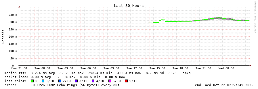 traceroute to 2001:b68:d:0:ee08:6bff:fe73:2da0 (2001:b68:d:0:ee08:6bff:fe73:2da0), 30 hops max, 80 byte packets - Generated at 2025-10-21 22:30:01
