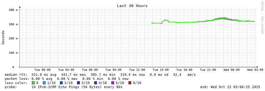 27 > 2a02:2f00:8708::dd (2a02:2f00:8708::dd) [AS8708] 335.774ms 338.620ms 330.252ms