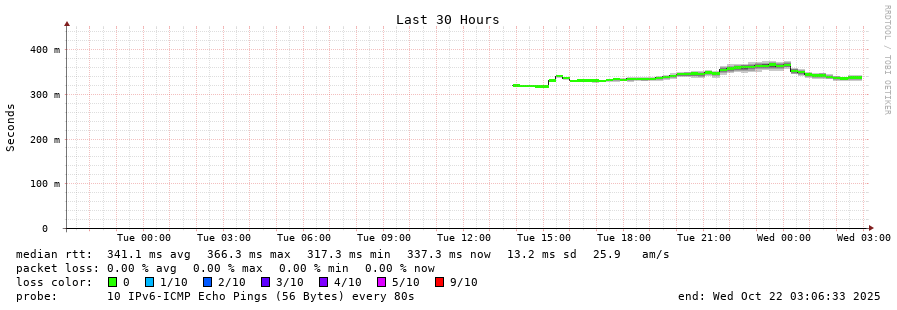 traceroute to 2a03:8f84::f1b6:9702:29c:9062 (2a03:8f84::f1b6:9702:29c:9062), 30 hops max, 80 byte packets - Generated at 2025-10-21 22:30:01