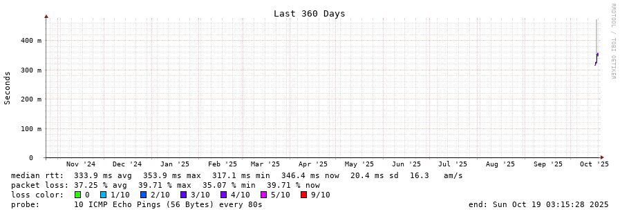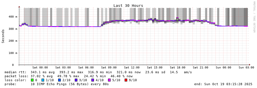 19 > 199.100.8.23 (199.100.8.23) [AS174] 387.935ms 365.042ms 359.659ms